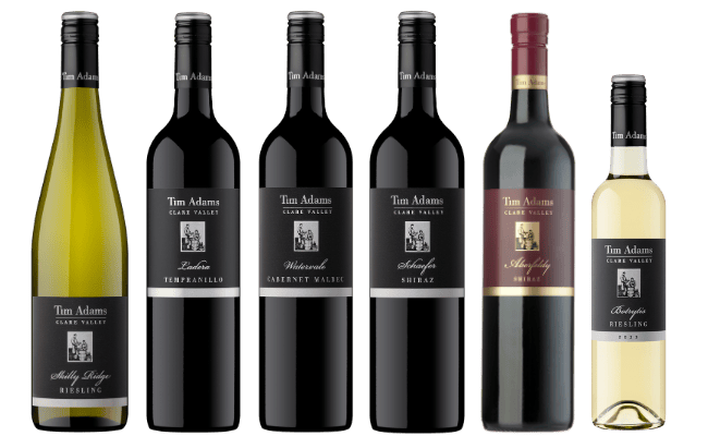 Tim Adams ‘Skilly Ridge’ Riesling 2022 Tim Adams ‘Ladera’ Tempranillo 2021 Tim Adams ‘Watervale’ Cabernet Malbec 2018 Tim Adams ‘Schaefer’ Shiraz 2020 Tim Adams Botrytis Riesling 2023 Tim Adams ‘Aberfeldy’ Shiraz 2019